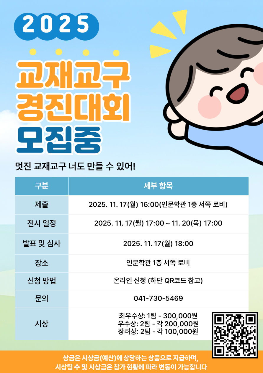 | 제목 | 2025학년도 수업실연 경진대회 및 교재교구 경진대회 안내 | ||||