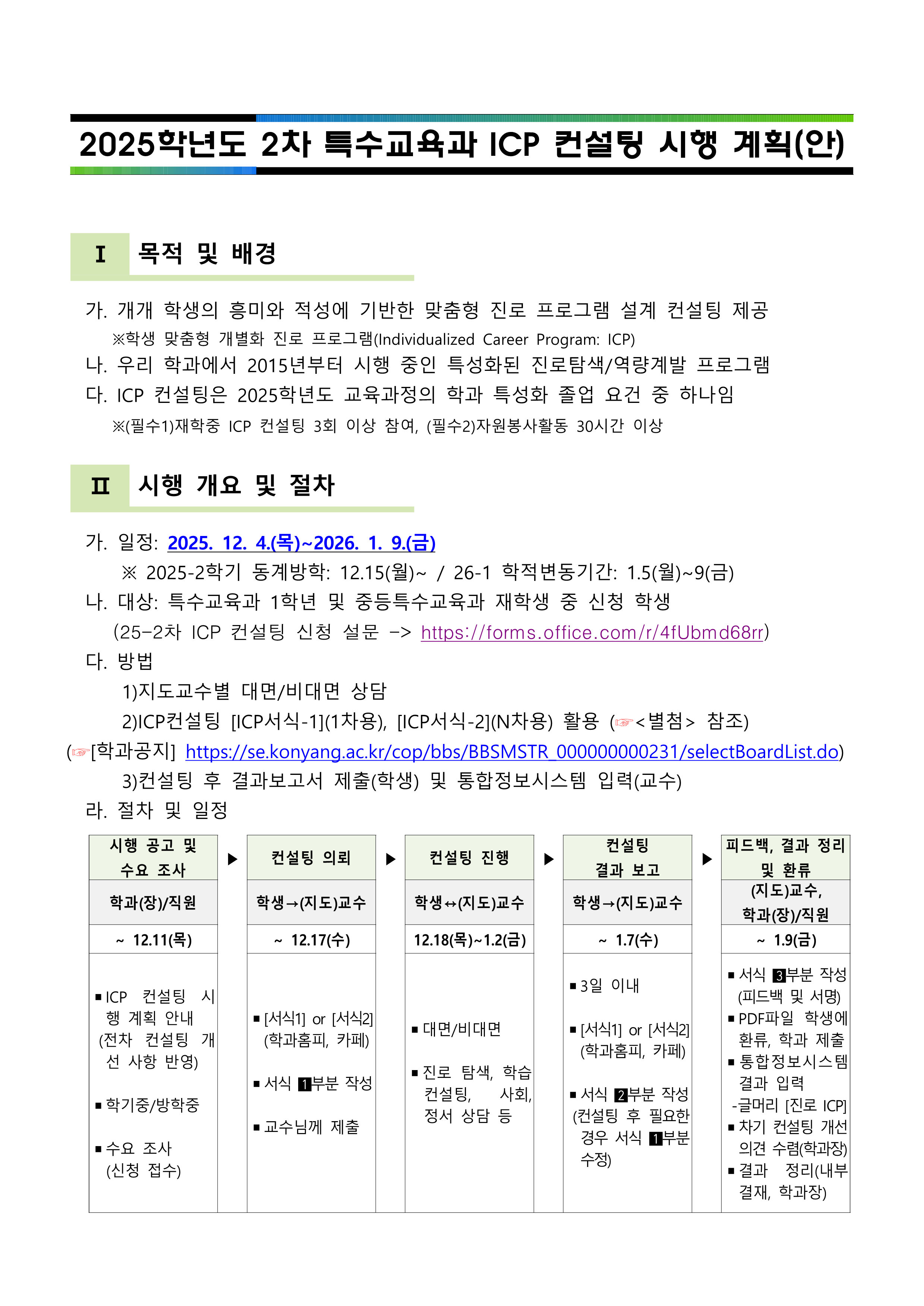 | 제목 | 2025학년도 2차 특수교육과 ICP 컨설팅 관련 안내 | ||||