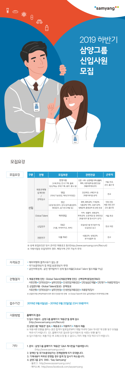 (~9/22) [삼양그룹] 2019 하반기 신입사원 모집 안내 글의 상세내용